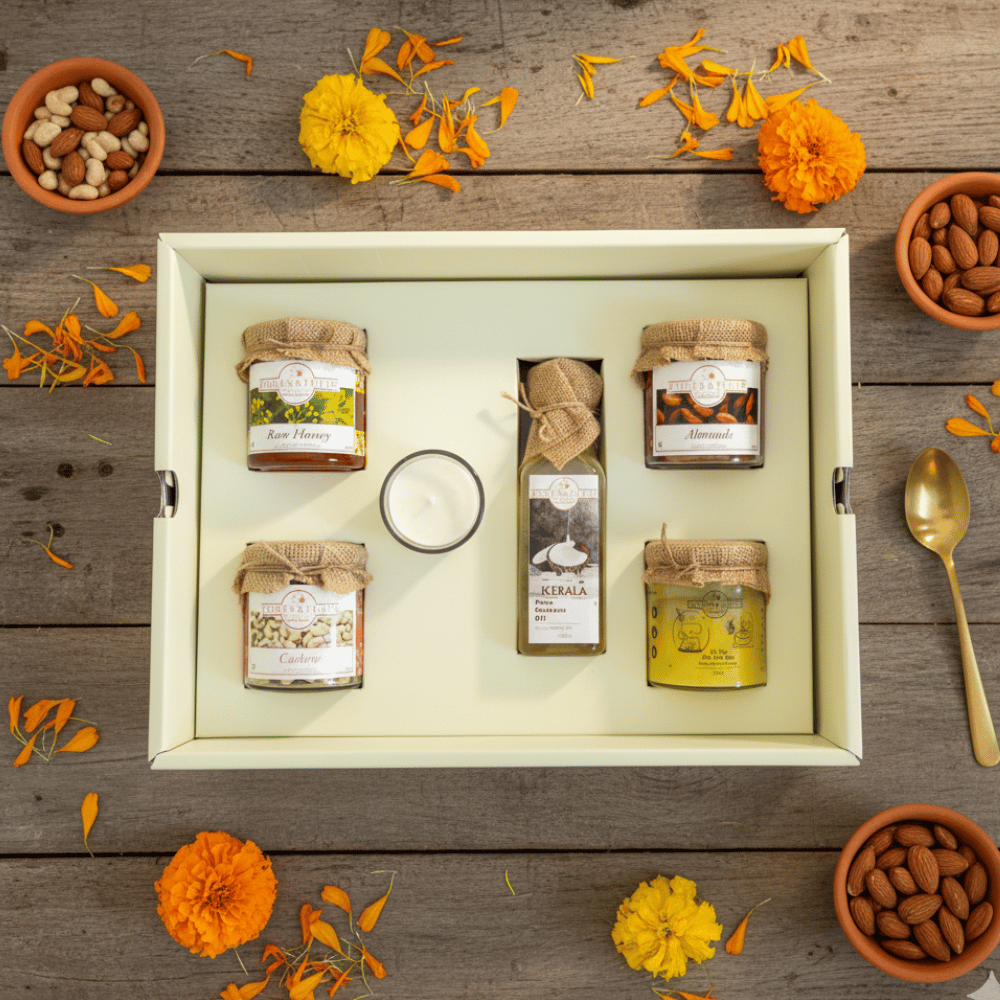This isn't just a gift; it's an experience. The Natural Harvest hamper is a perfect choice for birthdays, festivals, or simply as a thoughtful gesture to show you care. Each item is selected for its purity and quality, making it a gift that truly nourishes the body and soul.