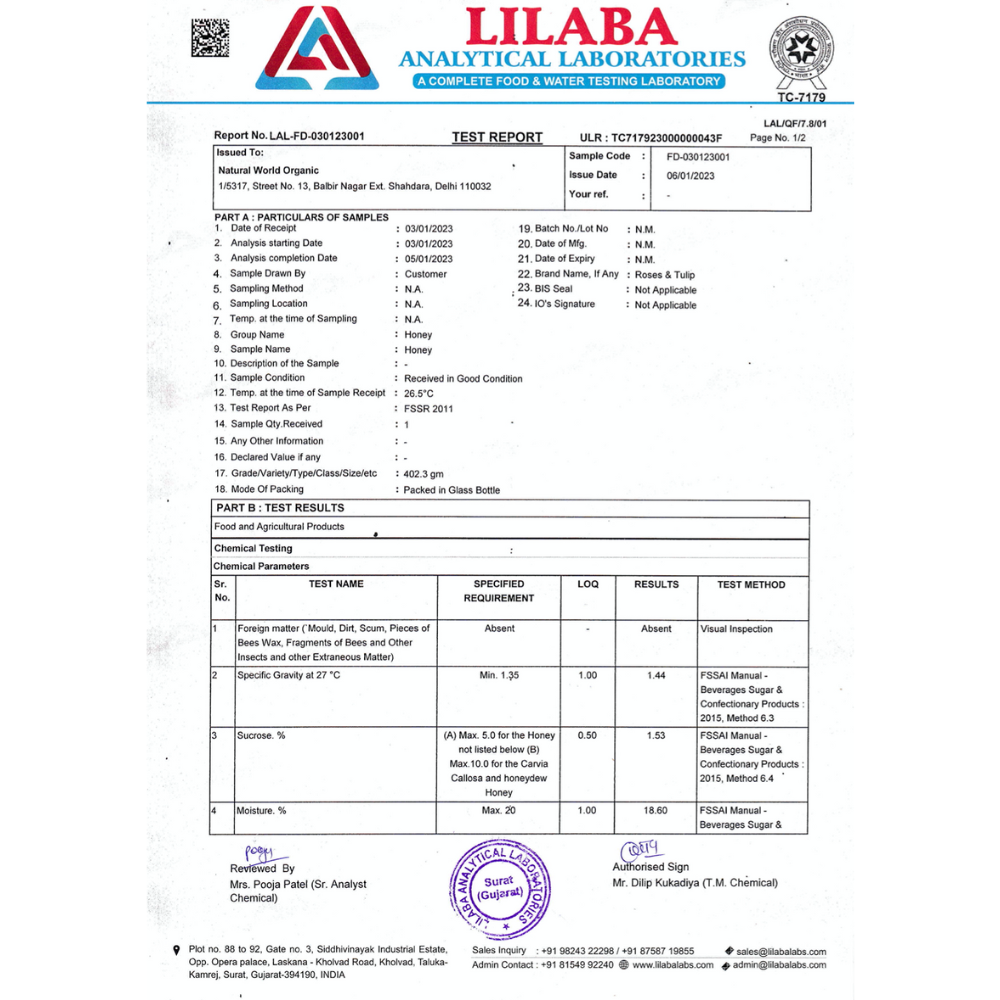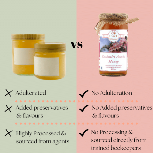 At Roses and Tulip, we believe in offering only the best quality products to our customers. Our Honey is sourced from the finest apiaries in India and is carefully handcrafted to ensure that it retains all of its natural goodness. We never add any artificial colors, flavors, or preservatives to our honey, ensuring that you get only the purest and most natural sweetness.