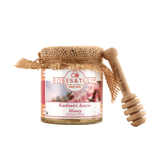 Sourced from the enchanting landscapes of Kashmir, our honey is a pure and unadulterated delight for the Indian consumer. Crafted by bees that forage on the aromatic blossoms of the native Acacia trees, this honey is a symphony of floral notes with a hint of woody undertones. Known for its exceptional clarity and mild sweetness, Kashmiri Acacia Honey is a cherished culinary treasure.