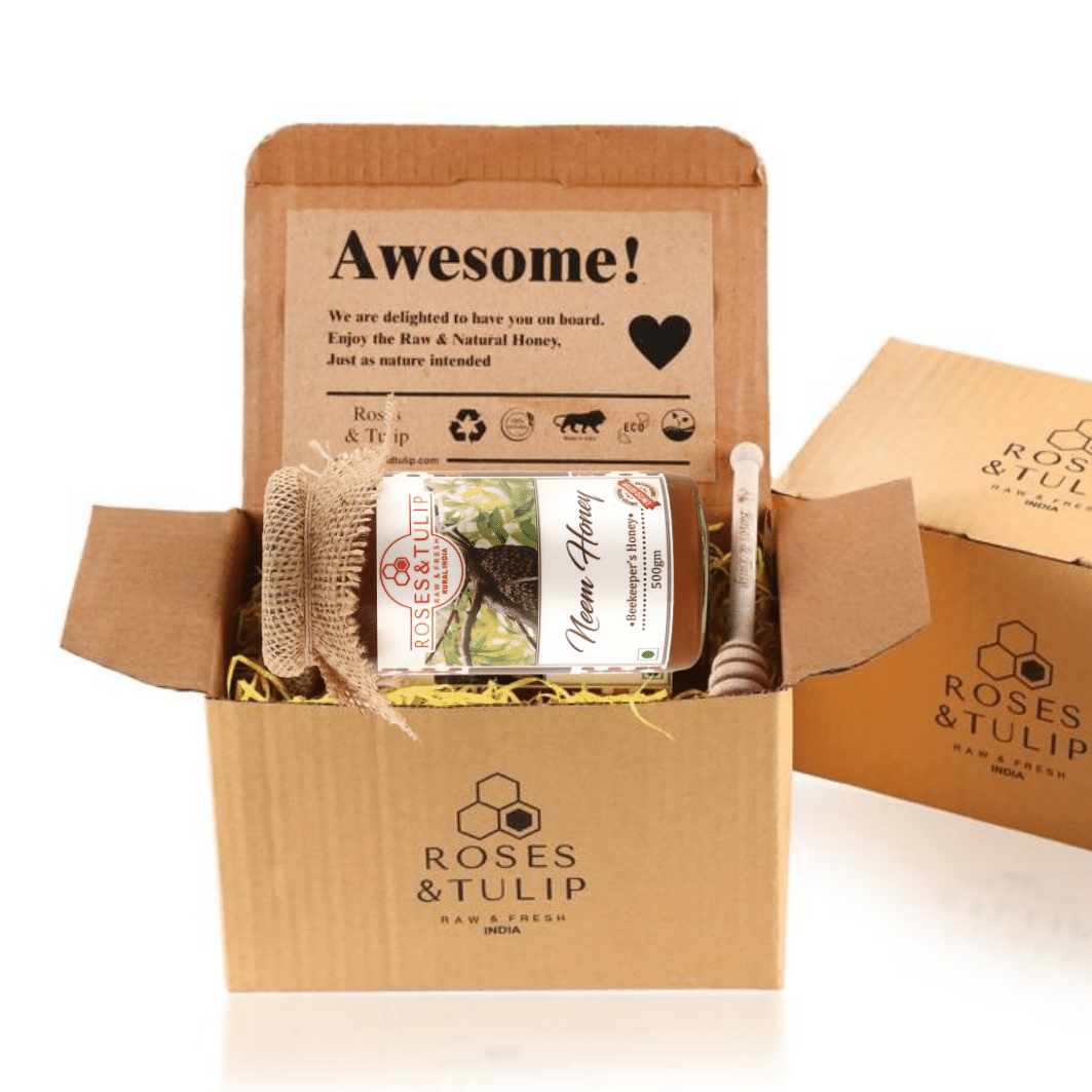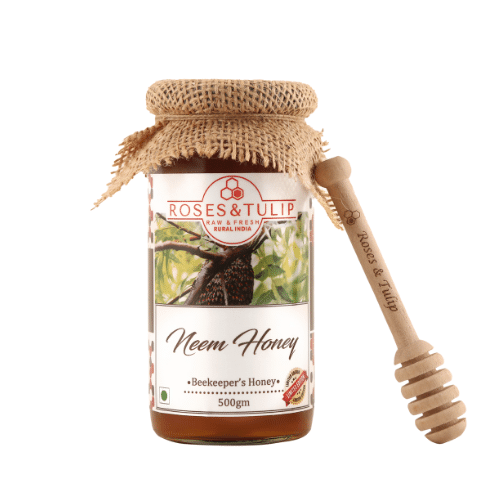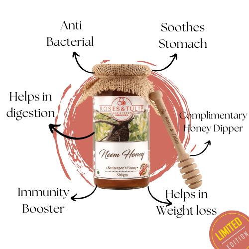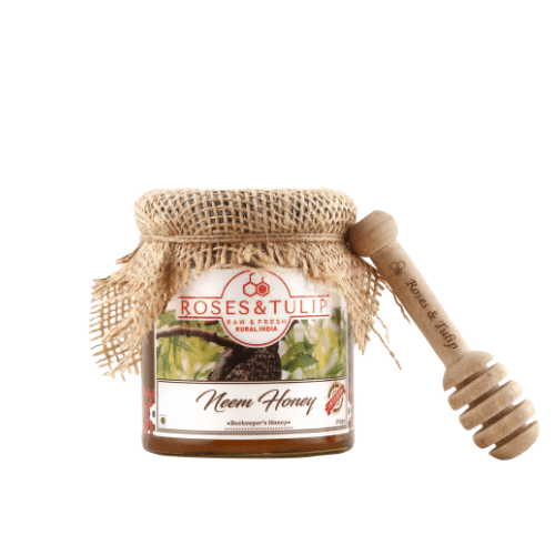 Sourced from the sacred Neem tree, revered for its medicinal properties, this honey is a testament to purity and authenticity. Handcrafted with utmost care, our Neem Honey encapsulates the essence of nature's healing power. Delight in its rich, amber hue and distinct, earthy flavor. Experience the unparalleled luxury of pure, unadulterated Neem Honey, a true treasure from Roses & Tulip.