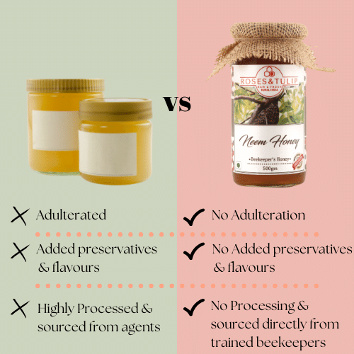 At Roses and Tulip, we believe in offering only the best quality products to our customers. Our Honey is sourced from the finest apiaries in India and is carefully handcrafted to ensure that it retains all of its natural goodness. We never add any artificial colors, flavors, or preservatives to our honey, ensuring that you get only the purest and most natural sweetness.