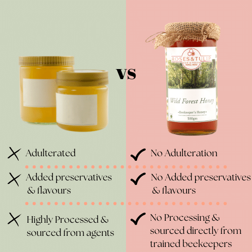 At Roses and Tulip, we believe in offering only the best quality products to our customers. Our Honey is sourced from the finest apiaries in India and is carefully handcrafted to ensure that it retains all of its natural goodness. We never add any artificial colors, flavors, or preservatives to our honey, ensuring that you get only the purest and most natural sweetness.